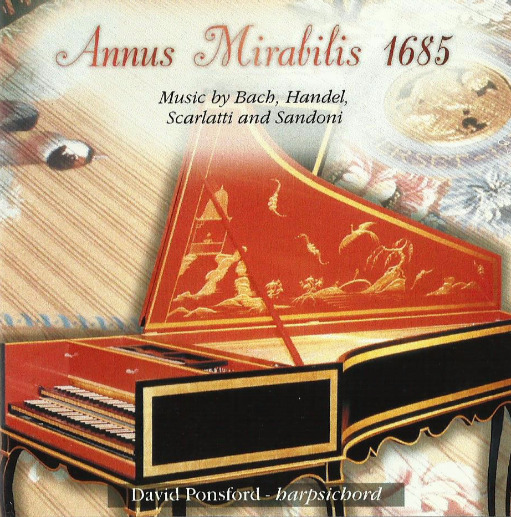 Harpsichord music celebrating the birth of J S Bach (Partita No. 4 in D major), Handel (Suite No. 7 in G minor), Domenico Scarlatti (Three Sonatas from Essercizi per gravicembalo ), and first recorded performances of two pieces by P. G. Sandoni (1685- 1748) transcribed and edited by David Ponsford.